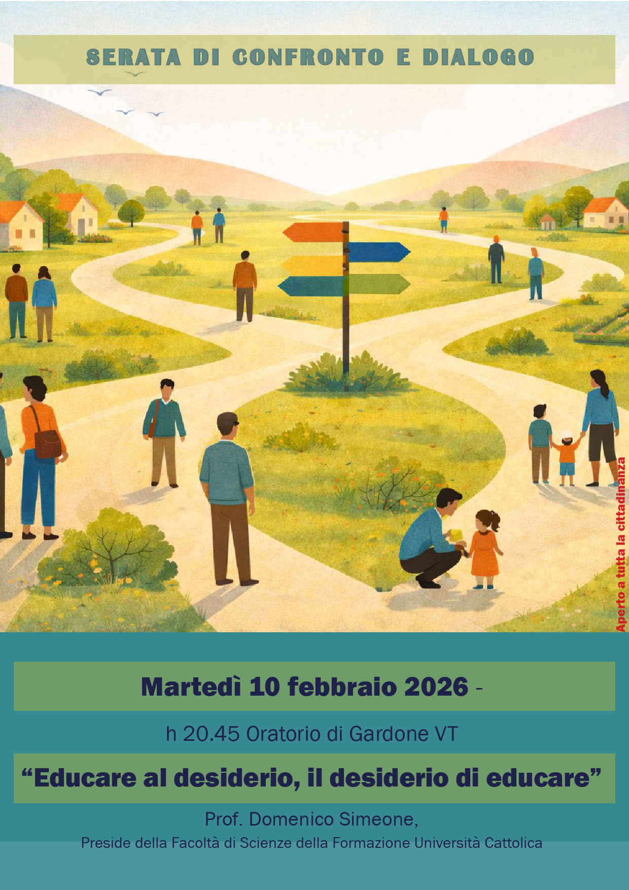 Uno dei doni più preziosi del cammino è la scoperta – o la riscoperta – di cosa significhi educare al desiderio. Non un desiderio consumato in fretta, ma che nasce nel profondo mettendo in moto la vita. Educare al desiderio è ascoltare il battito del cuore, riconoscere le passioni che ci abitano, dare un nome ai sogni che chiedono spazio. È insegnare ad adulti e giovani a distinguere ciò che brilla per un attimo da ciò che nutre per sempre. È chiedersi: di cosa ho sete? Quale bene desidero costruire? Quali passi posso compiere perché questo desiderio diventi dono per qualcuno? E la comunità nasce proprio così: da desideri che si risvegliano, da cuori che si lasciano toccare. Nasce da porte che si aprono, da parole che curano, da mani che trovano il coraggio di tendersi. Nasce quando smettiamo di chiederci soltanto «funziona?», «fa sopravvivere?», e ricominciamo a chiederci «fa vivere?». Perché la vera rivoluzione è spesso silenziosa: avviene nelle nostre case, nelle cucine, nelle stanze in cui ci parliamo, nei corridoi della parrocchia dove qualcuno trova un orecchio attento, per strada.